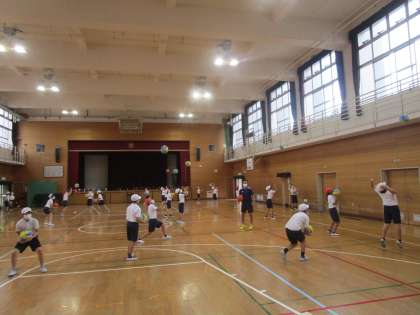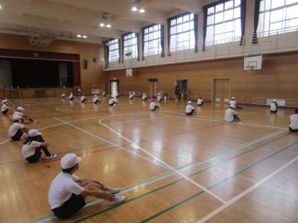 13日(月)、5年生は体育科の学習に取り組みました。今市中学校の体育科の先生にお越しいただき、授業をしていただいてます。この日は体育館でボールを使って様々な体の動きを学習しました。簡単そうで難しい動きがたくさんあり、子どもたちはクリアしようとがんばっていました。