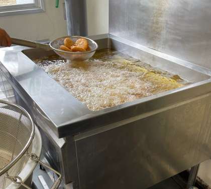チキンレバーカツは、ほんのりカレー味がついて食べやすく、不足しがちな鉄をとることがでる一品です。子ども達に大好評でした!