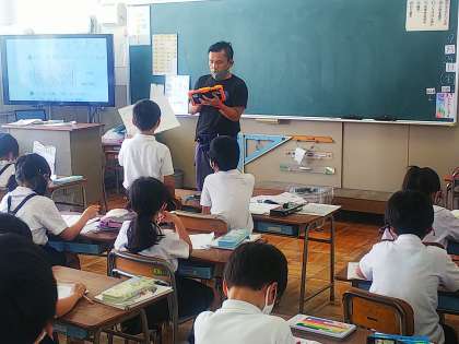 2年生は算数で四角形の学習をしていました。身の回りにある長方形を探し