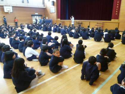 それぞれの教室では、自己紹介や並び方の練習をしました。