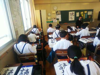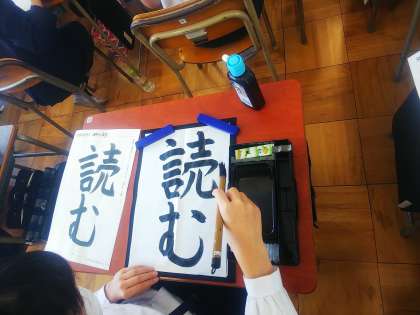 5年生は書写の時間に毛筆で「読む」という字を書いていました。用紙に対しての漢字とひらがなの大きさを考え、丁寧に書けていました。