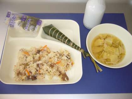 メニューは、牛肉のちらしずし・五目汁・ちまき・牛乳でした。