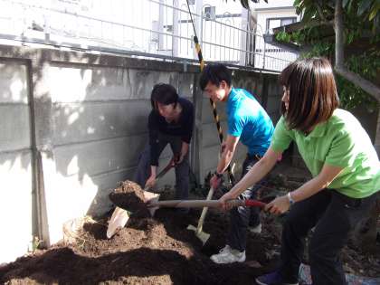 子どもたちが育てる「アサガオ」の土をつくりました。