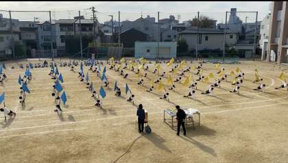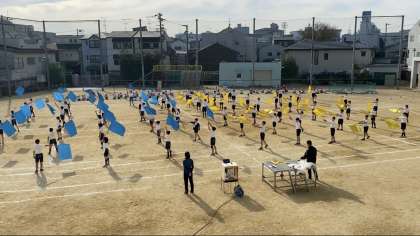今度は、「古市小学校の顔」の最高学年6年生の演技です。始まるまでソワソワしていた1年生も演技が始まると誰も話さず圧巻の演技に注目していました。