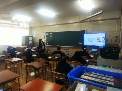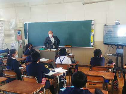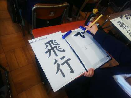 6年生が海洋トライアルに行っているその一方、校内の5年生は、2組が習熟度別に分かれて算数(割合)の学習を、1組が書写(毛筆)の学習を行っています。聞くときは静かに、活動するときは活発に、学習に集中しています。