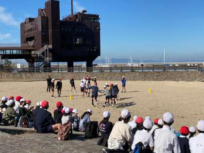 砂の上を走って借り人ね書かれた紙を取り、ゴールをするのが見ている友たちも面白いみたいです。