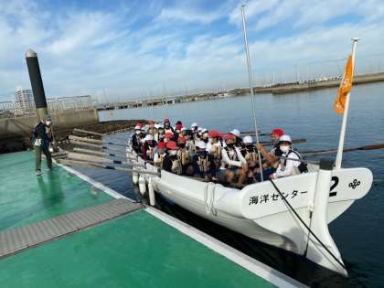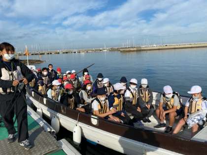 カッターに乗っているみんなの様子です。