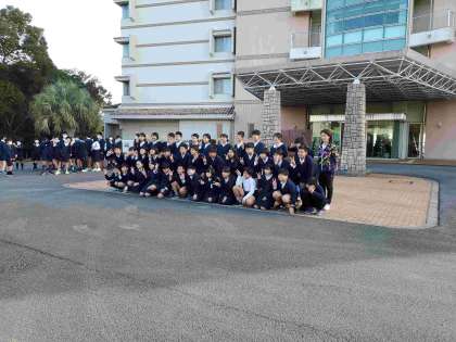 お世話になった宿舎の部屋を片付けを行った後、宿舎前で集合写真を撮影しました。