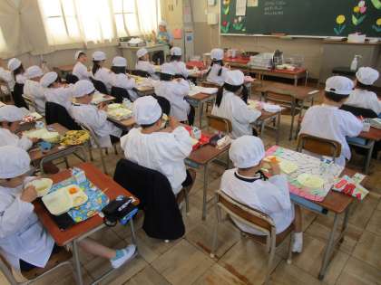それぞれの学級で子どもたちはがんばって食べていました。初めての給食なので喜んでいる子ども、戸惑っている子どもの姿がありましたが、「全部食べれた!」と喜んで報告してくれる子どもがたくさんいました。