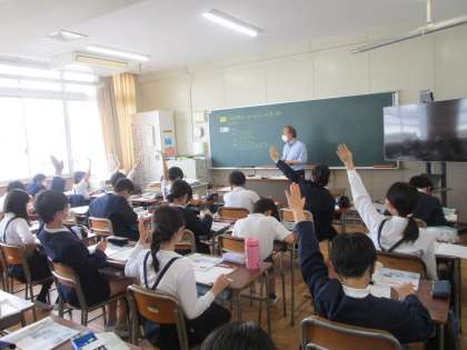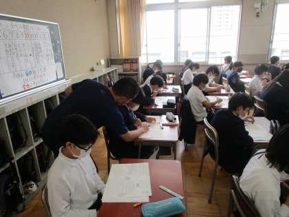 6年生の算数の時間は、今市中学校の数学の先生が来られて授業支援をしていただきました。本年度も5・6年生の算数にかかわっていただけます。社会科の学習では、日本国憲法の学習に取り組んでいました。