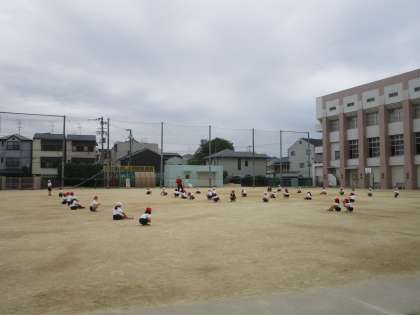 2年生の様子です。体育科の学習でボール投げの練習をしていました。スポーツテストでソフトボール投げの記録を測定します。子どもたちはがんばって練習に取り組んでいます。