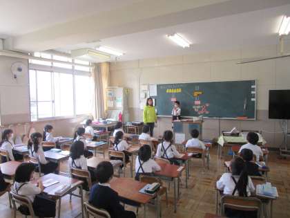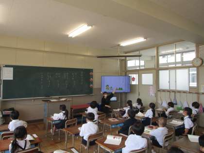 算数科では絵や図を数字と結びつける学習、国語科では「あめですよ」の音読に取り組んでいました。子どもたちが元気よく発言している姿をたくさん見ることができました。
