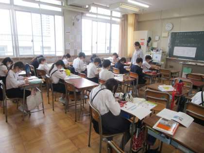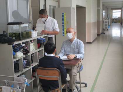 5年生の様子です。外国語の時間は先生と一緒にスピーキングテストをしました。例えば