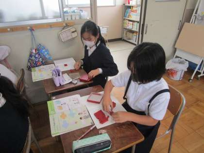 算数科の学習では、立方体を使って、体積の学習に取り組んでいました。具体物を使うことで考え方がわかりやすくなりました。