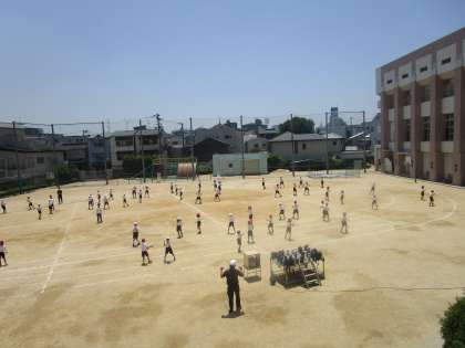 3年生と5年生は運動場で運動会の練習に取り組んでいました。3年生は団体演技の隊形移動の練習をしていました。5年生は応援隊の子どもたちをしっかりみんなで支えていくことの確認をしていました。