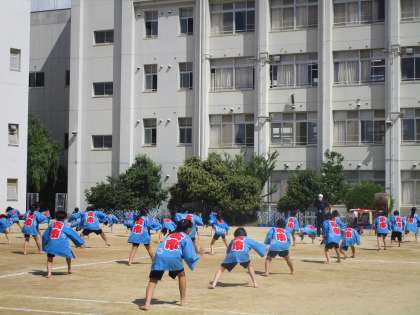 5年生は初めて伝統の法被を羽織ってソーラン節の練習を行いました。法被を配ってもらっている姿は緊張感をもっているようでした。今日の5年生はたくましく見えました。