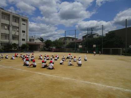2年生は個人走と団体演技の練習を行いました。個人走は初めてトラックを走ります。自分のコースをきちんと走ることができていました。団体演技も元気で楽しく踊ることができています。