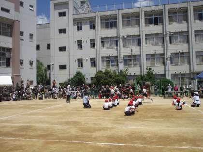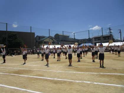 4年生はパーランクルーを持ち、沖縄の伝統芸能エイサーを披露しました。パーランクルーの音と子どもたちの心が一つになりました。