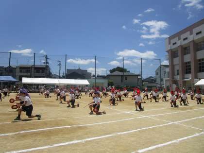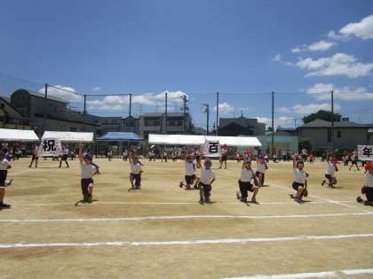 100周年を記念し、子どもたちは、「祝」「百」「年」の旗を作り。フィナーレで登場しました。とても立派な応援旗でした。