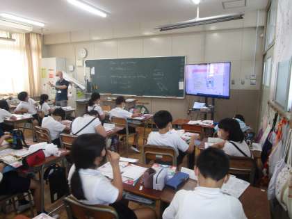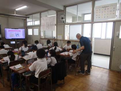 5年生は外国語の学習に取り組んでいました。バースデーカードを作成し、友達と交換しました。