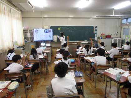 4年1組・2組の様子です。1組では、2組の先生が保健の学習で性にかかわる指導をお子にあました。自分の体の成長について学習しています。