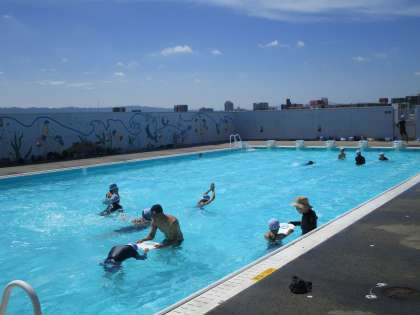 5年生・4年生のプールでの様子です。ここ数日、快晴の日が続いています。しかし、暑さ指数が「危険」になってしまうとプールでの学習はできなくなってしまいます。今日も午後からは「危険」になることが予想されましたので、5年生は午前中に時間割を変更し、プールで学習しました。