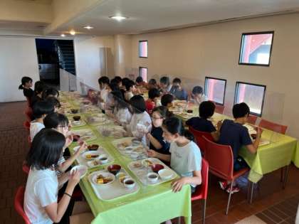 朝食の様子です。子どもたちは十分お腹いっぱいになりましたと言ってます。