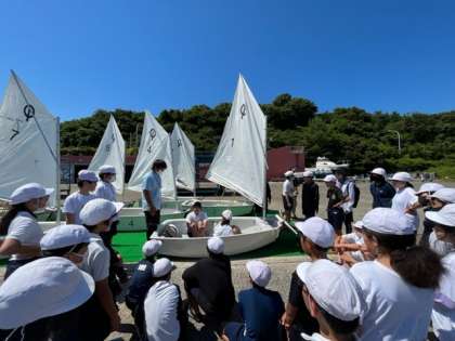 組み立てたヨットは自分たちで海辺まで運びます。立派なヨットです。