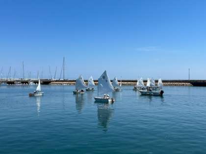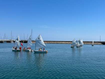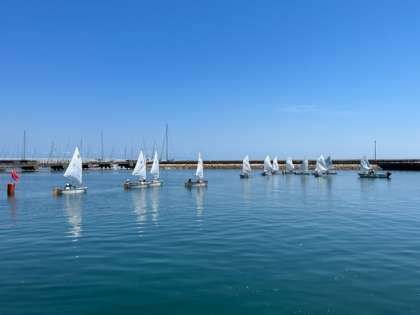 OPヨットは2人組で行います。ヨットの帆をコントロールする人と方向をコントロールする人にわかれます。