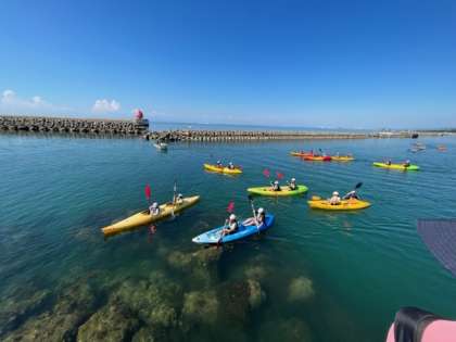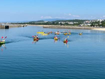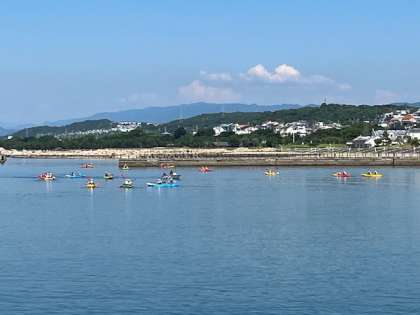 浜辺沖は古市小学校が貸し切り状態でカヌーを楽しむことができました。本当に景色もよく、風もなく、よかったです。