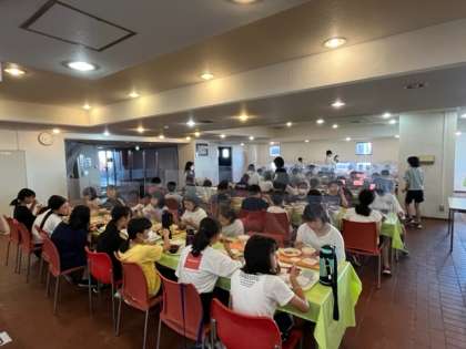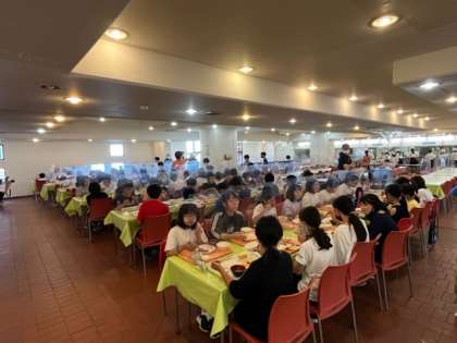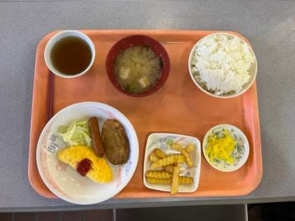 朝食の様子です。オムレツ、ベーコンポテトバーグ、ソーセージなど子どもたちはお腹いっぱいと言いながらしっかり食べていました。