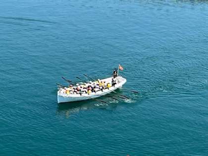 写真のように子どもたちの力だけでカッターボートは進みます。みんなで力を合わせる事の難しさや大切さを学ぶ機会となりました。