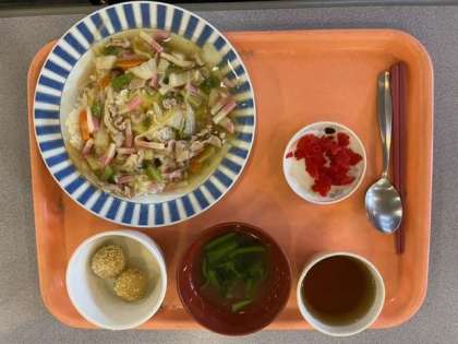 お昼ごはんは中華丼でした。お腹が空いていたので、美味しくいただきました。
