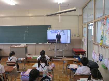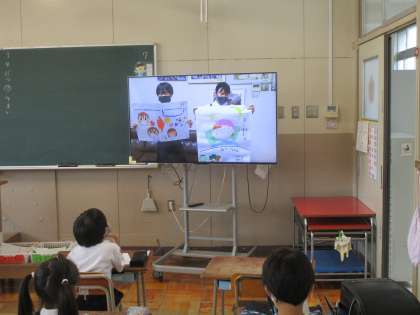 月曜日の朝は児童朝会があります。今日は教頭先生からのお話と健康委員会の児童から睡眠時間についての発表がありました。