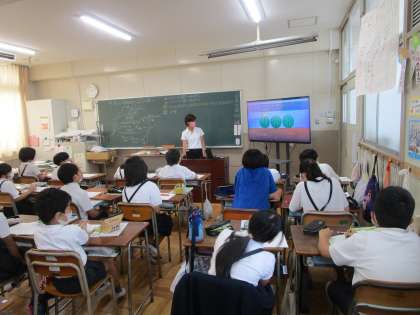 5年生の様子です。理科と外国語の学習に取り組んでいました。理科ではおばなとめばなのつくりについて学習していました。外国語では各曜日の時間割を英語で紹介しました。