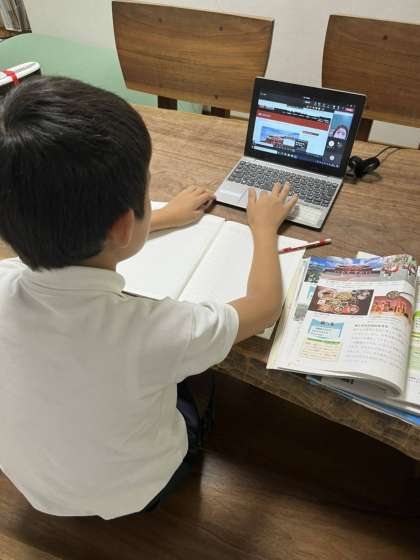 PTA役員さんのご協力でご自宅でのオンライン学習の様子を撮影していただきました。各ご家庭でお子様のサポートをしていただいたこと、感謝申しあげます。ありがとうございました。つながらなかった場合は、担任までお知らせください。どうぞよろしくお願いいたします。