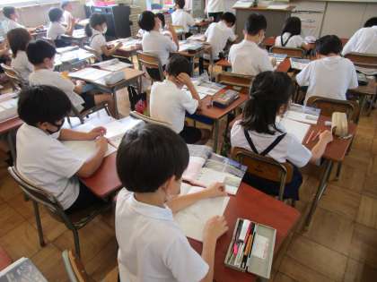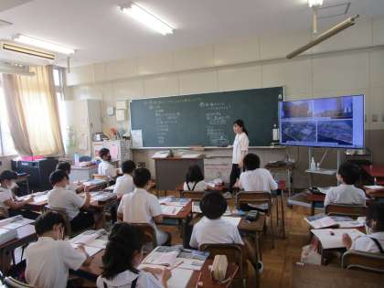 3年生の様子です。社会科で大阪市の海沿いの地域について学習していました。天保山やUSJなど子どもたちが知っている場所もたくさんあり、たくさん意見がでていました。