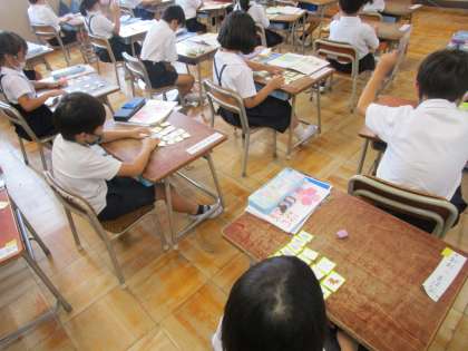 1年生の様子です。算数科でカードを使って数の大きさをくらべる学習に取り組んできました。入学時に比べると、学習内容がどんどん進んでいます。