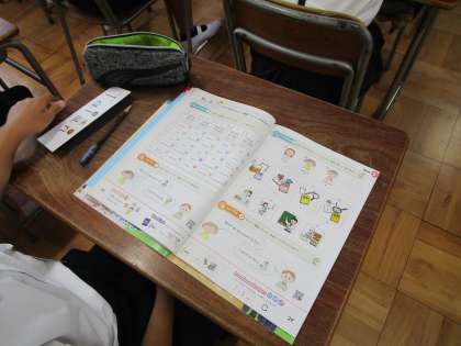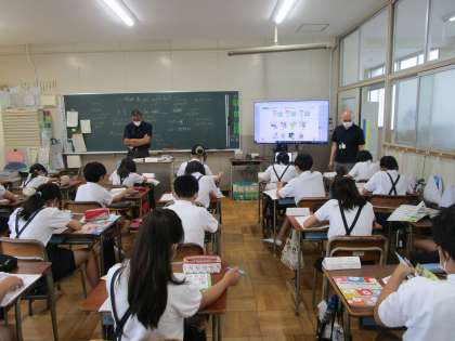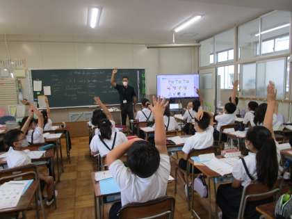 5年生の様子です。CーNETの先生と一緒に楽しく外国語の学習に取り組んでいました。将来希望する仕事に就くために、どのような勉強をするのかを英語で表現する学習に取り組んでいました。