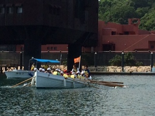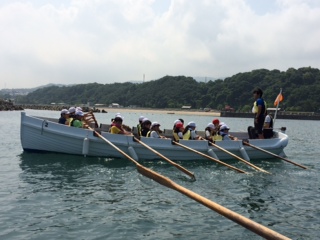「そーれ!一!二!」のかけ声で、重たい櫂を動かします。