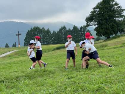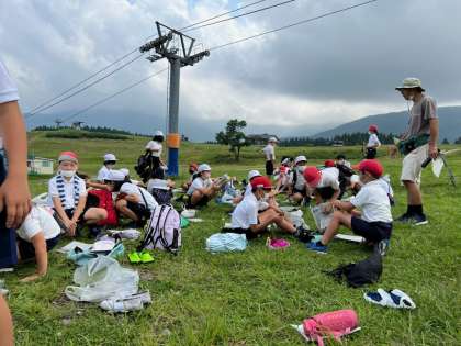 魚つかみの後は、3日目に作るしおりのための植物採集をしました。広い草原(冬はゲレンデ)を活動班ごとに広がり思い思いに拾いました!とても可愛い草花を採集しました。その後は虫を見たり、遊んだりみんなの顔はやっぱりニコニコです。