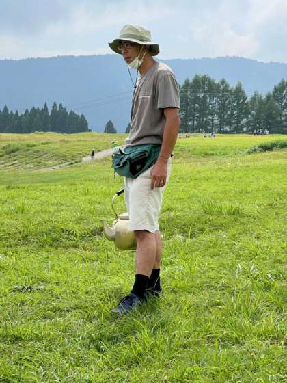 水筒にお茶を追加するために準備しているこの姿、やかんが似合います!