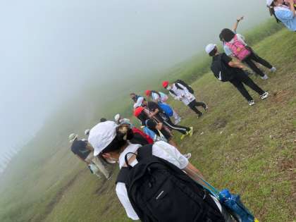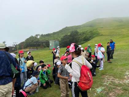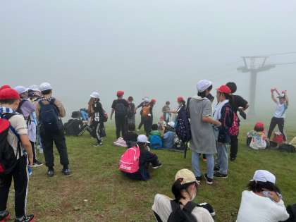 第一休憩所での様子です。ゴールまで一割ほどしか登っていませんが、子どもたちは到着した〜!と言っていました。