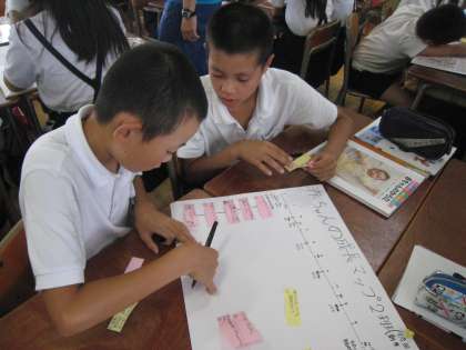 討議会では、本校の研究内容の柱である「思考の可視化」と