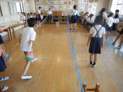 4−2「風船バレー」・・・床に風船を落とさないようにバレーボールをします。