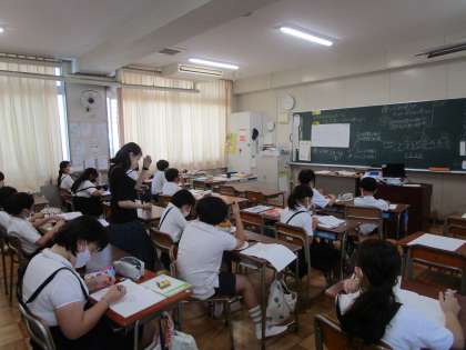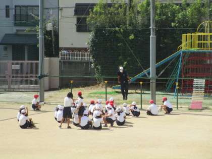5年生の様子です。算数科の時間は最小公倍数について学習していました。学級を分割して学習しています。体育科の授業は鉄棒に取り組んでいました。担任の先生が見本を示しています。