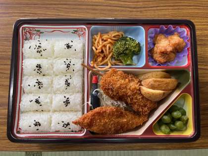 大広間でお弁当をいただきました。ボリュームがあってお腹いっぱいになりました。