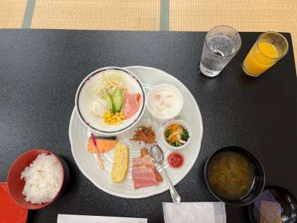 今朝の朝食です。和洋食の献立でした。