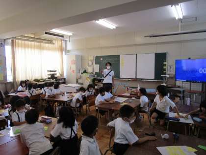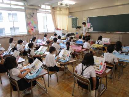 1・2・3年生の様子です。1年生は音楽科の学習で鍵盤ハーモニカを使っていました。楽器を使えることに子どもたちは喜んでいました。2年生は生活科の学習で地域のお店や施設について知っていることを発表していました。3年生は図画工作科の学習でパスと水彩絵の具を使って作品づくりに取り組んでいました。