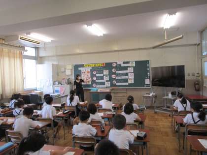 6時間目は3年生で栄養教諭が食に関する指導を行いました。しっかり噛んで食事を行うことの大切さを学習しました。
